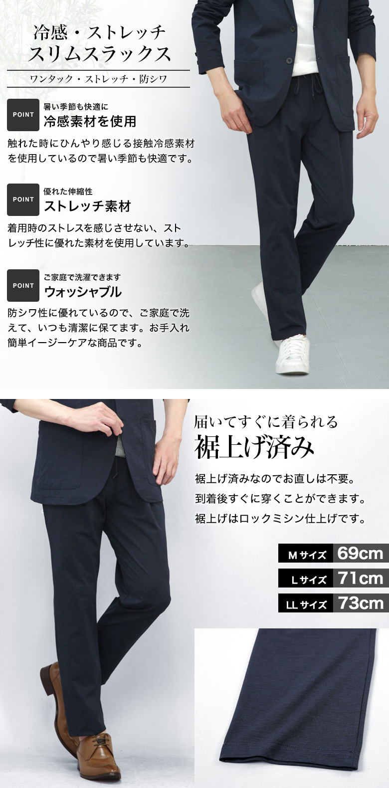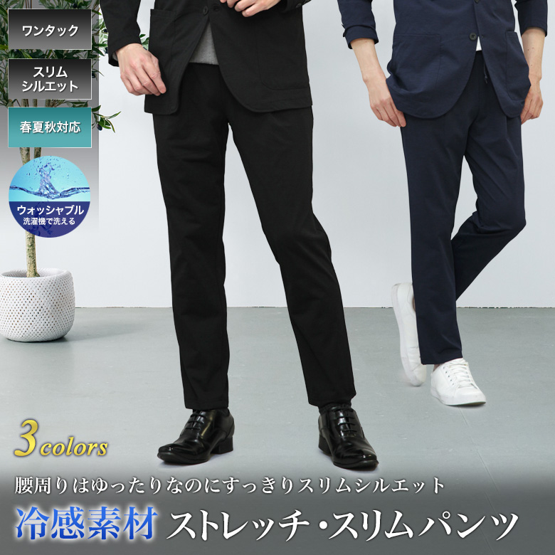 【冷感素材・ストレッチスリムパンツ】