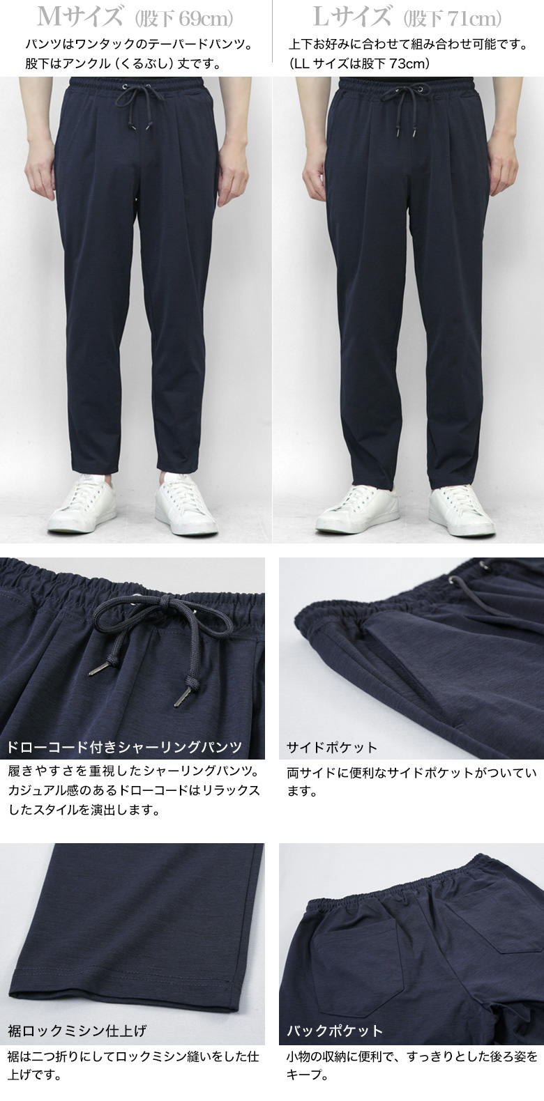 <紳士服><メンズ><カジュアルパンツ><ワークパンツ><冷感素材><涼しい><ワンタック><春夏秋><M、L、LL><ストレッチ><テレワーク><アクティブ><トラベル><グレー><ネイビー><紺><ブラック><黒><部屋着><mens-suit><コクボ><こくぼ>