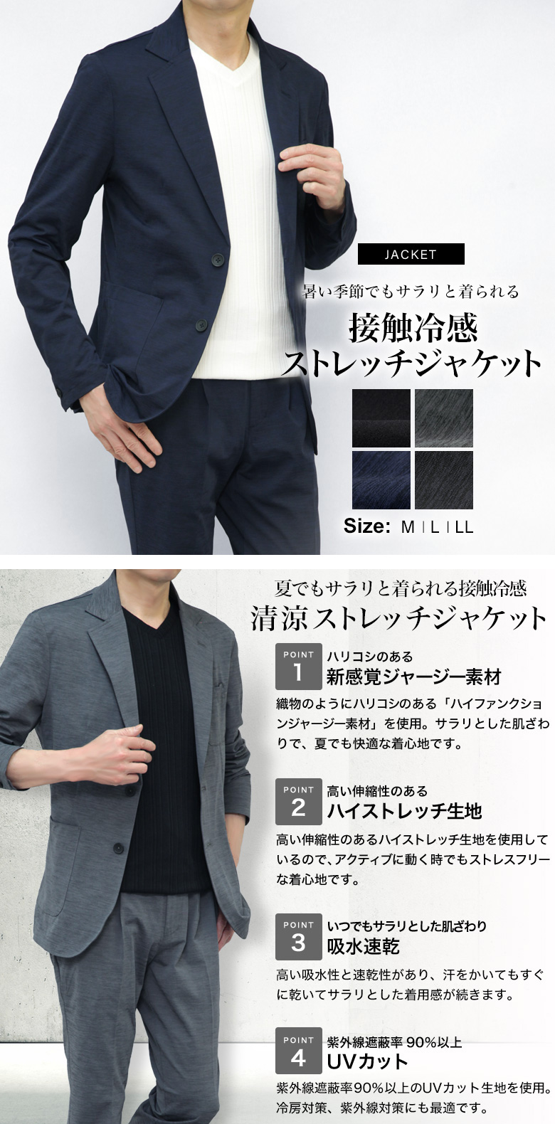 <紳士服><メンズ><ジャケット><春夏><M、L、LL><清涼><ストレッチ><UVカット><吸水速乾><ウォッシャブル><テレワーク><アクティブ><トラベル><KOKUBO><コクボ><こくぼ>