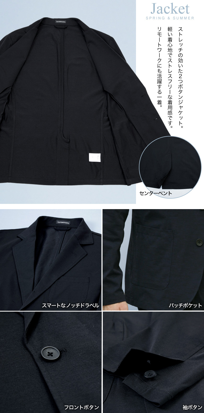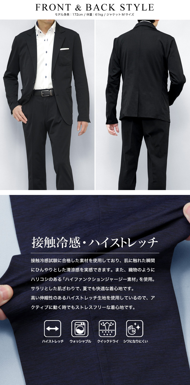 トップページ > ビジネススーツ > 春夏秋・スーツ > 接触冷感 清涼 ストレッチ ジャケット レギュラーシルエット テーラードジャケット UVカット 吸水速乾 洗える ウォッシャブル カジュアル ビジネス 春夏 おしゃれ リモートワーク【ジャケット単品・セットアップ対応】