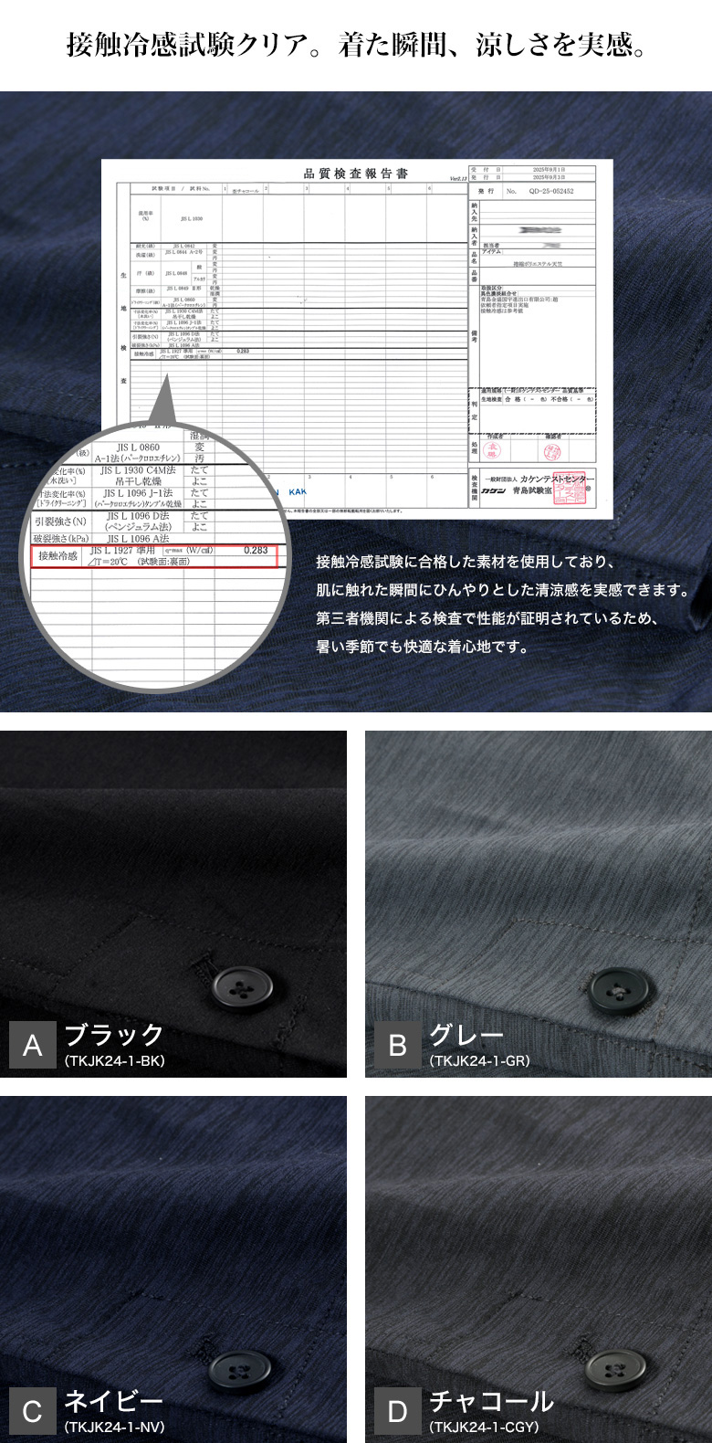 夏でもサラリと着られる、清涼ストレッチジャケット