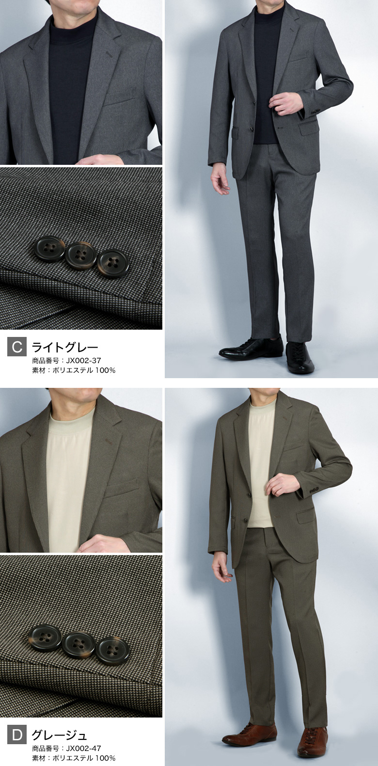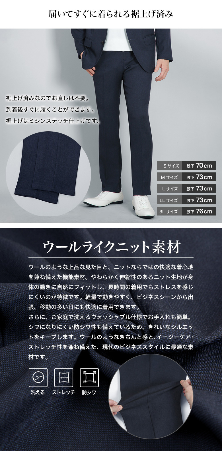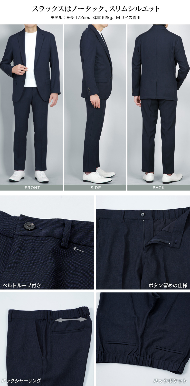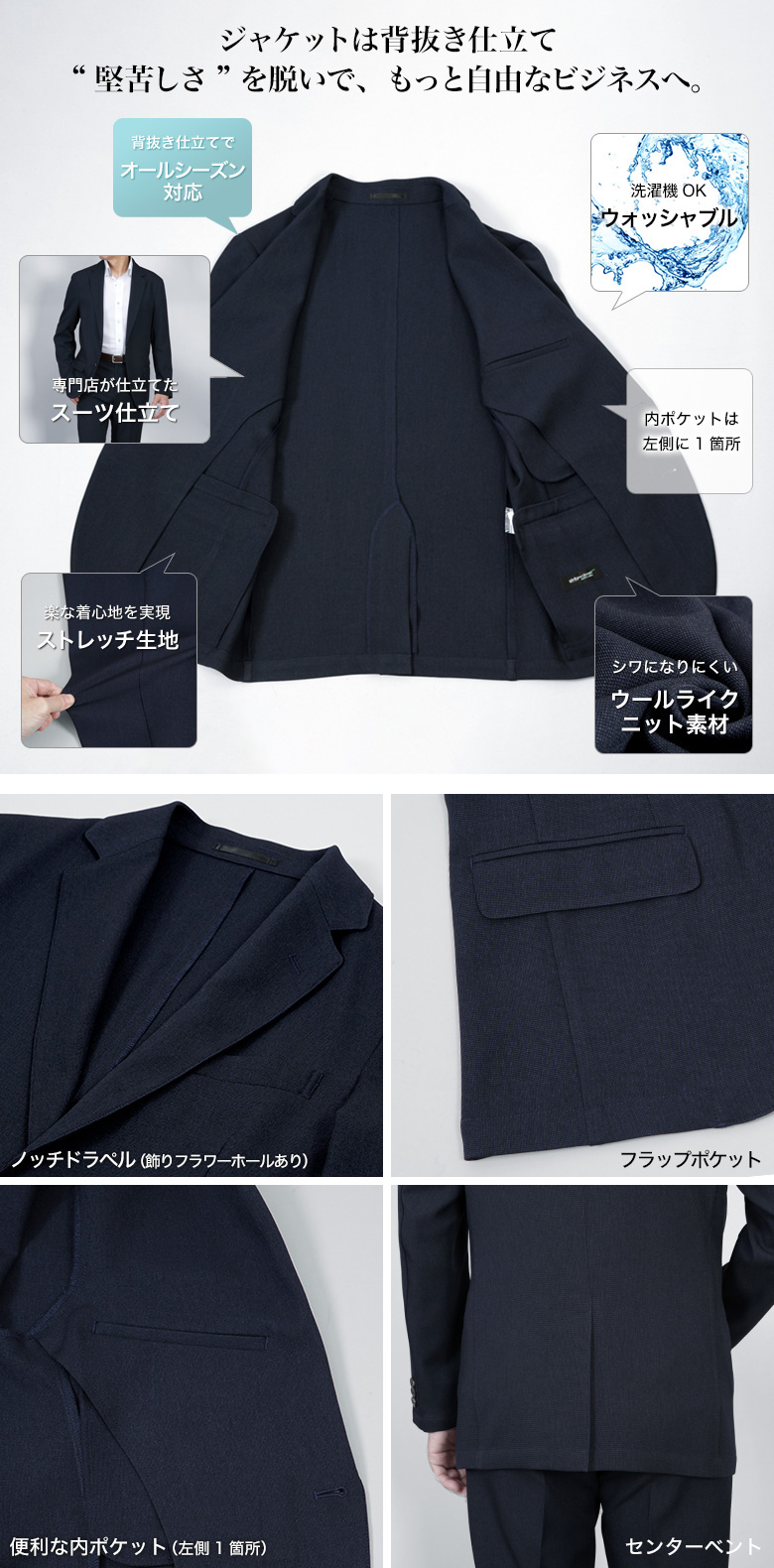 ・ジャケット、パンツともにストレッチ生地使用 |