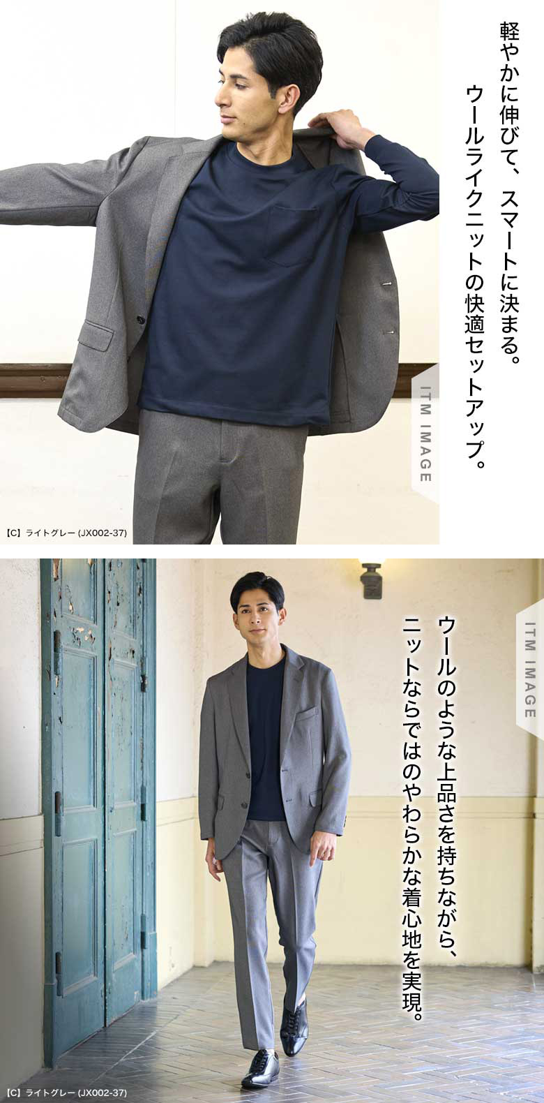 【ウールライクニット素材・カジュアルセットアップスーツ】