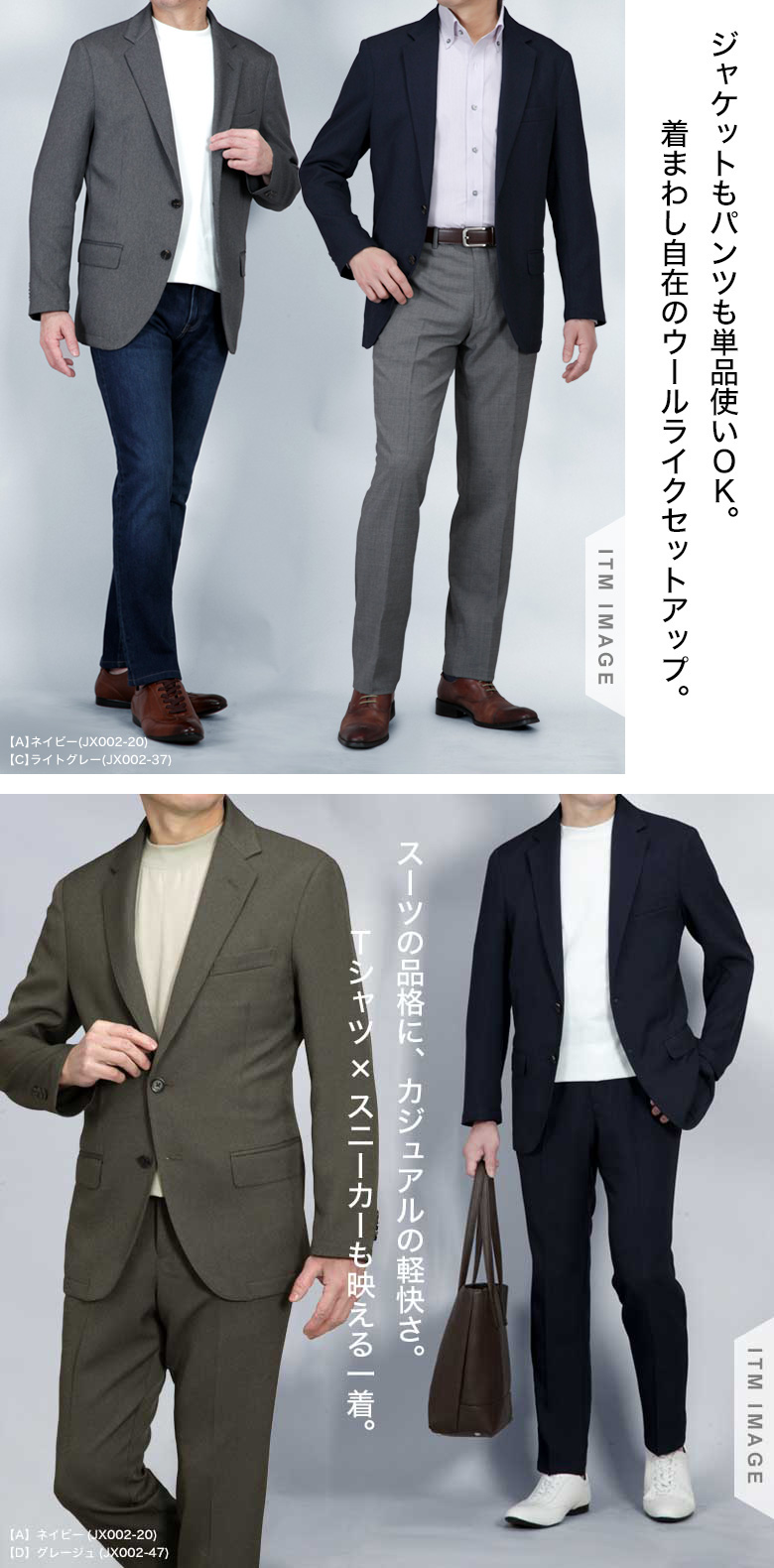 <紳士服><メンズ><ウールライク><ストレッチニット><カジュアルセットアップ><背抜き仕立て><ノータック><ジャケット><パンツ><オールシーズン><S、M、L、LL、3L><ストレッチ><ビジネス><テレワーク><アクティブ><ワークスーツ><トラベル><スーツ仕立て><KOKUBO><コクボ><こくぼ>