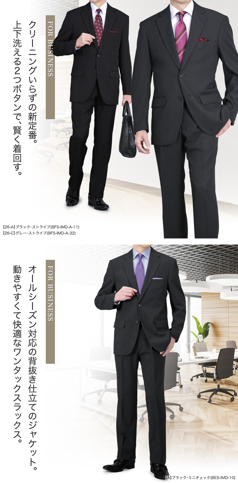 <春夏秋><2ツボタンスーツ><ビジネススーツ><上下ウォッシャブル><洗えるスーツ><A体・AB体・BB体><就職活動、就活スーツ><リクルート><濃紺・ネイビー・黒・ブラック・グレー・ストライプ><メンズファッション><スーツ メンズ><メンズ・紳士服・スーツセットアップ・男性用・上下2点><ストレッチ素材><リンクルフリー><防シワ><KOKUBO><コクボ><こくぼ>