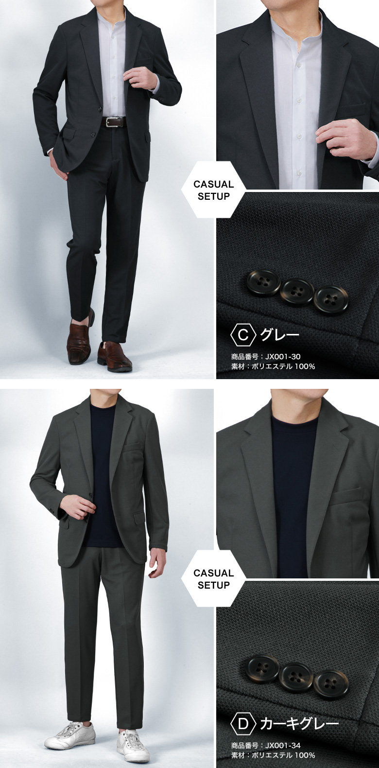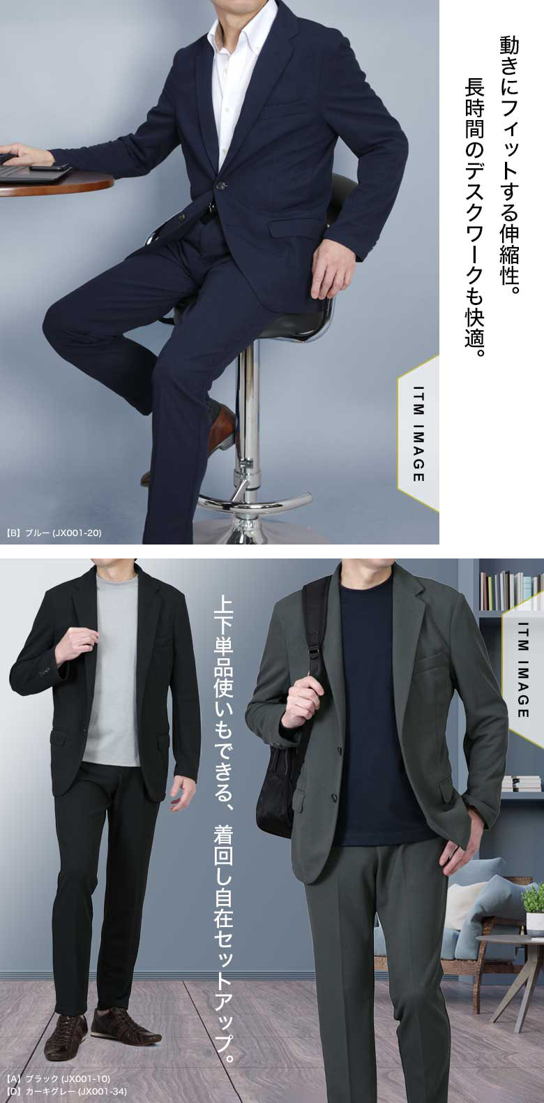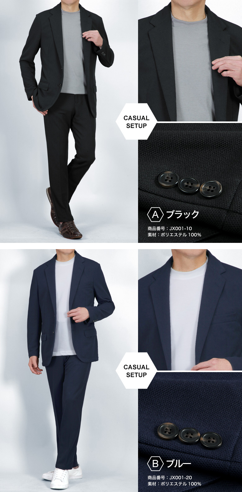 <紳士服><メンズ><ハニカムジャージ><カジュアルセットアップ><背抜き仕立て><ノータック><ジャケット><パンツ><オールシーズン><S、M、L、LL、3L><洗える><ウォッシャブル><ストレッチ><防シワ><ビジネス><テレワーク><アクティブ><ワークスーツ><トラベル><スーツ仕立て><KOKUBO><コクボ><こくぼ>