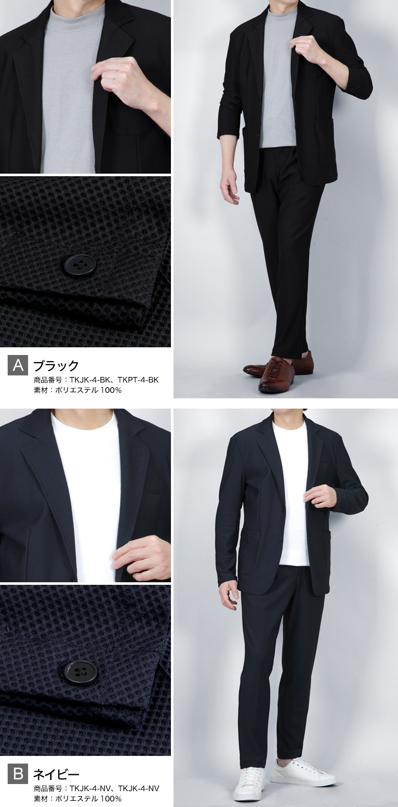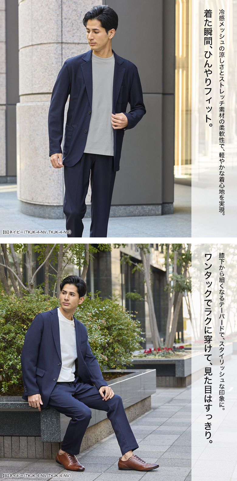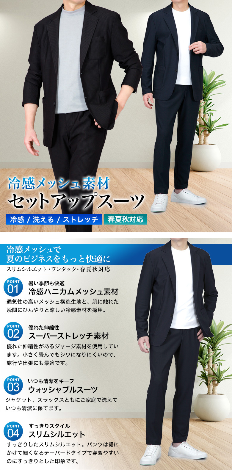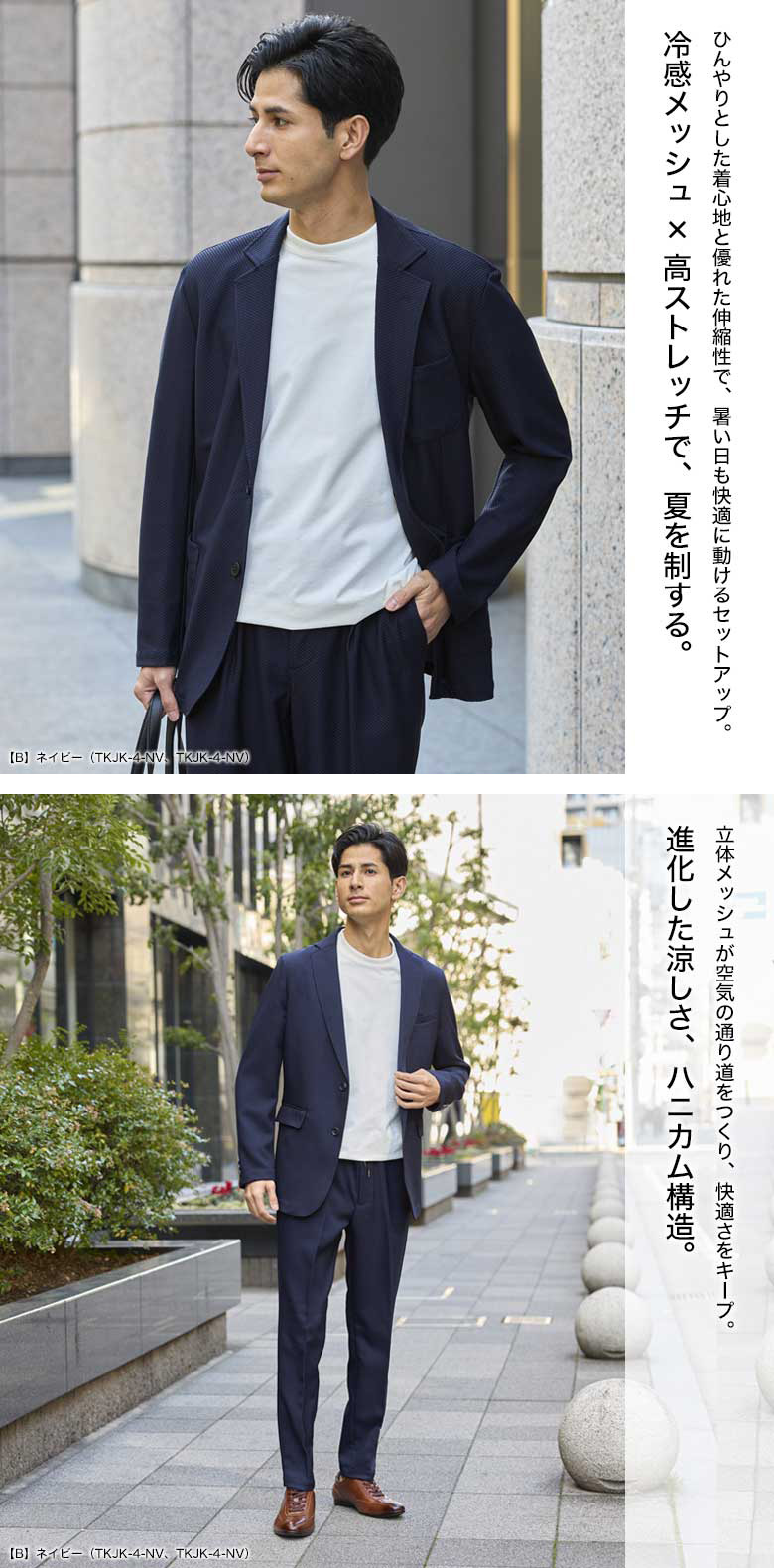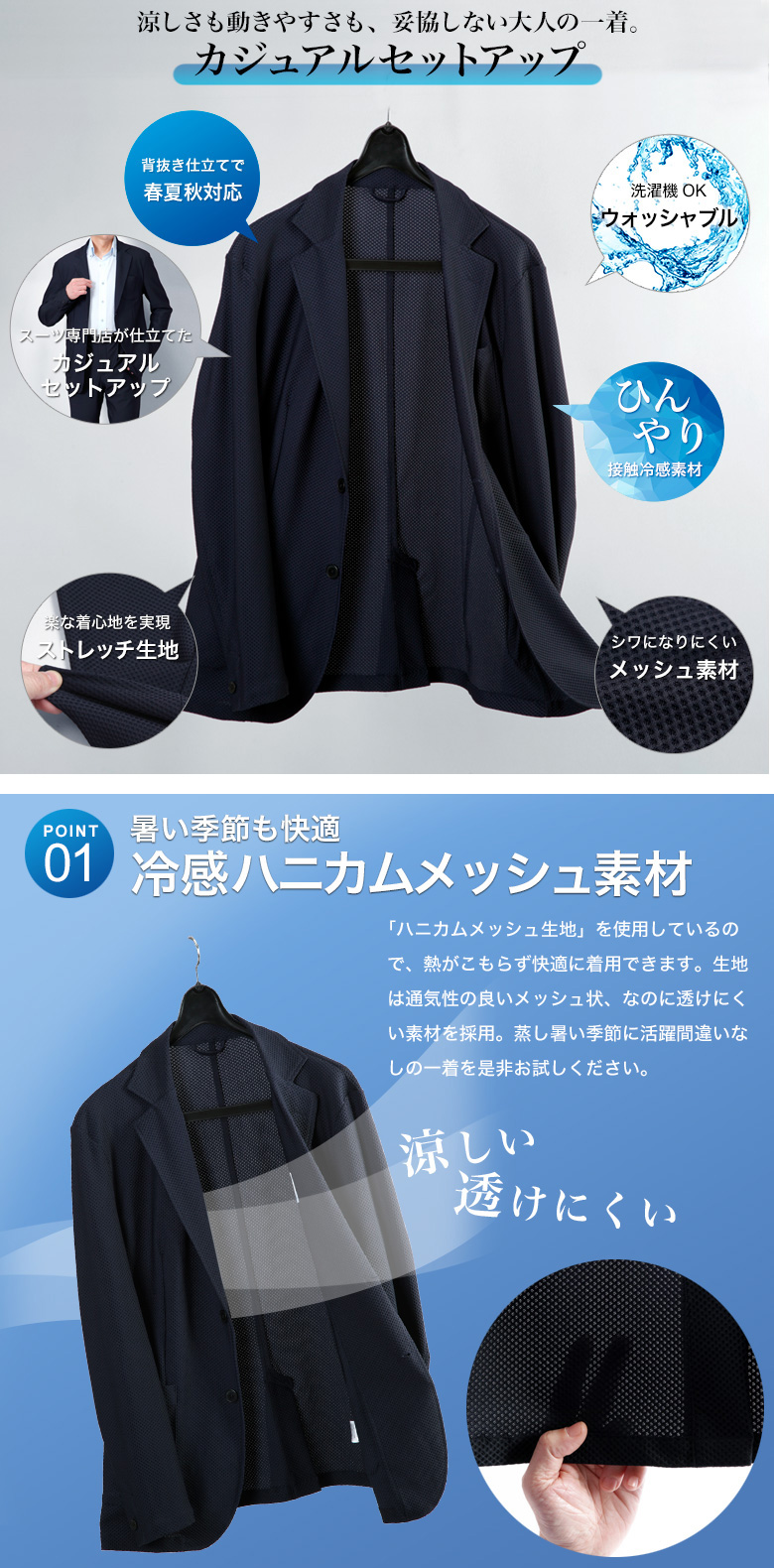 【冷感メッシュ素材・カジュアルセットアップスーツ】