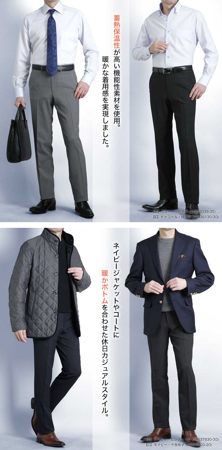 <ビジネススラックス><秋冬春><スリーシーズン><ノータック><スリム><蓄熱保温><ストレッチ><防シワ><軽量><ウールライク><美脚><ネイビー・ブラウン・グレー・チャコール><ジャケパンスタイル><ストレート><ビジカジ><KOKUBO><コクボ><こくぼ>