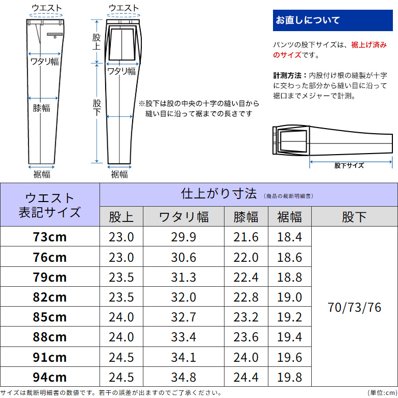・股下:70cm/73cm/76cm から選べます