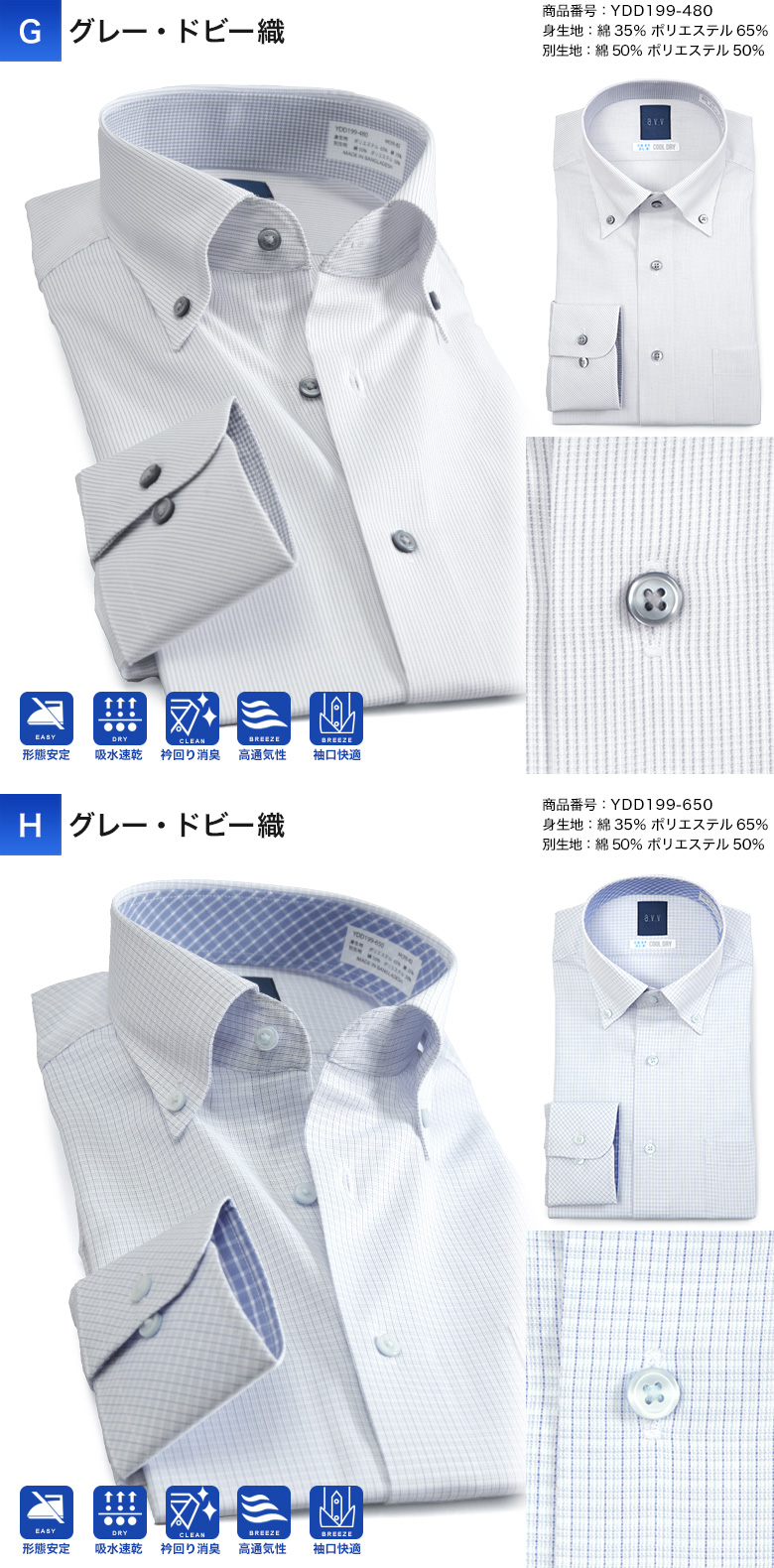 ・【C〜H】綿35%、ポリエステル65%