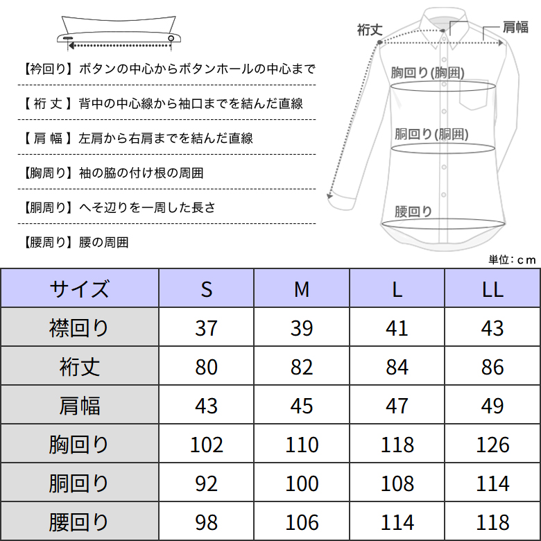 LL(襟43cm-裄86cm) |